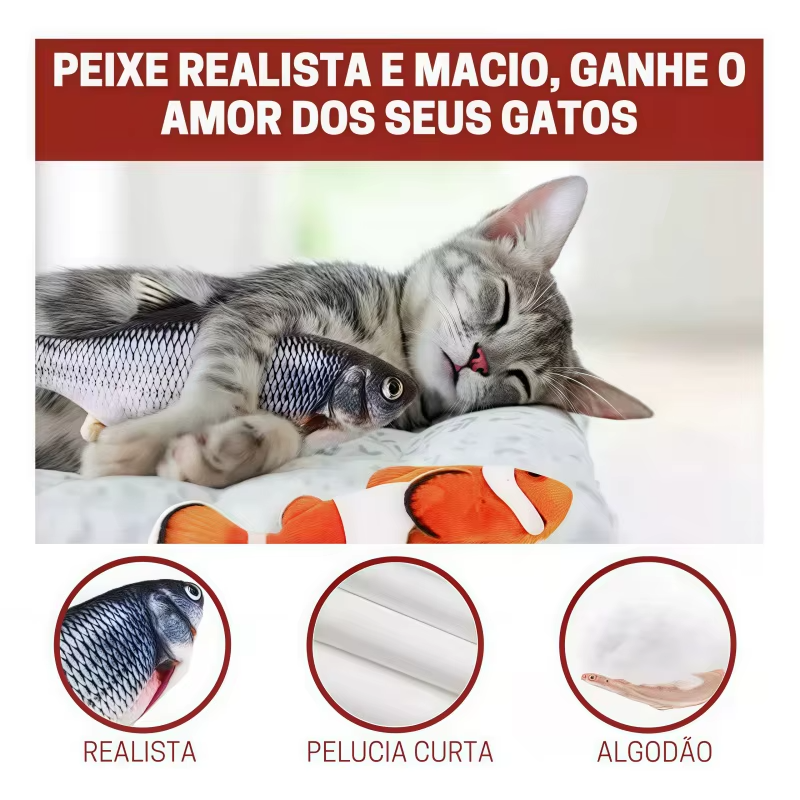Ao menor toque, o peixe se movimenta automaticamente, imitando um peixe de verdade. Isso mantém o interesse do gato por muito mais tempo, tornando a brincadeira mais envolvente.